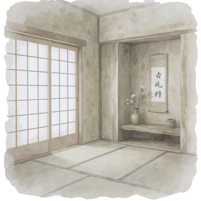- Un tokonoma con una caligrafía o flor para invitar a la reflexión.