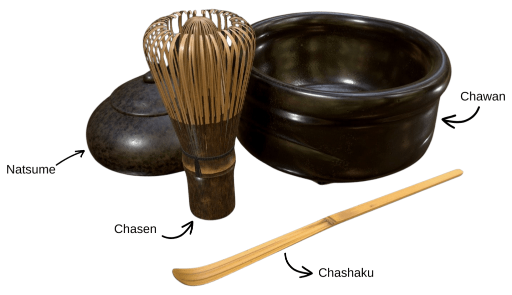 La preparación del té se apoya en una serie de utensilios (chadōgu) que, más allá de su función práctica, tienen un valor simbólico: