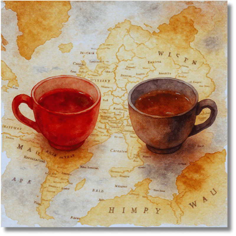 En el fascinante mundo del té, pocas confusiones son tan intrigantes como la del Té Rojo y el Té Oscuro. Ambos provienen de la misma planta, la Camellia sinensis, pero sus historias, procesos y hasta sus nombres nos cuentan sobre caminos muy diferentes: uno marítimo y el otro terrestre; uno químico y el otro microbiano. ¿Estás listo para desentrañar este enigma aromático?
