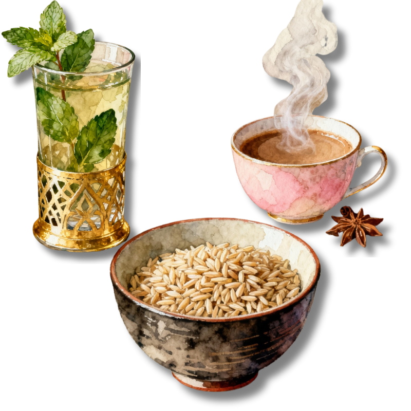 - Té a la menta marroquí (Té Moruno): combina el té verde Gunpowder con hierbabuena fresca. Es como una bebida que encarna la hospitalidad.