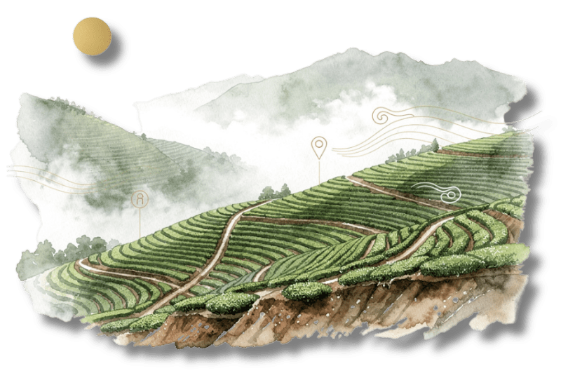 El té también habla del lugar donde nació. El concepto francés “terroir” se refiere a cómo el suelo, la altitud, el clima y hasta la tradición local moldean el sabor final.
